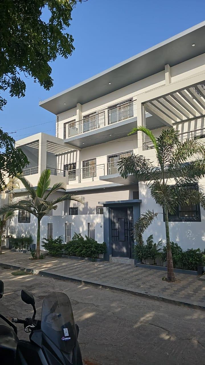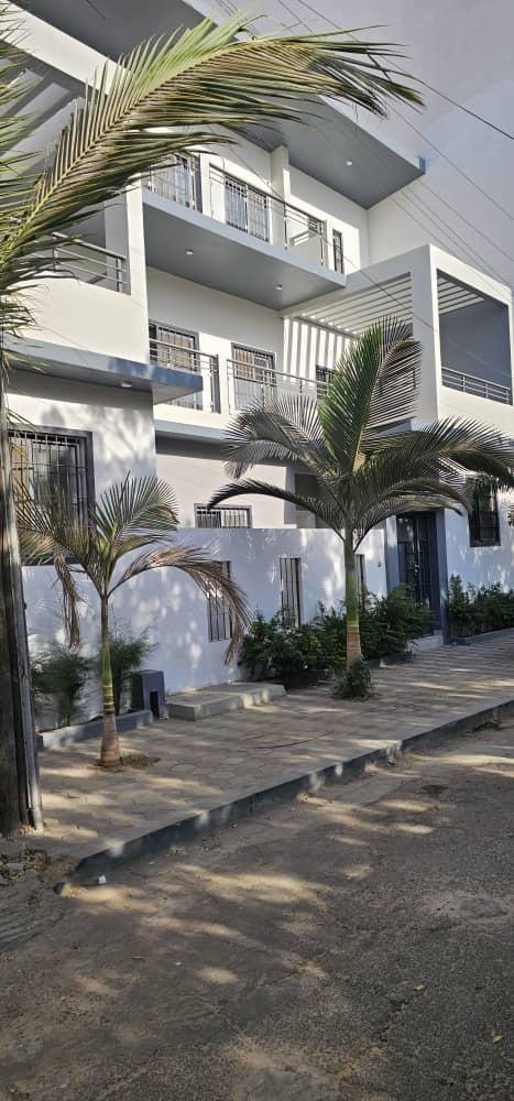 Une villa R+2 spacieuse avec six chambres, un salon lumineux, une cuisine moderne, plusieurs terrasses, un jardin paysagé et des équipements de sécurité avancés.